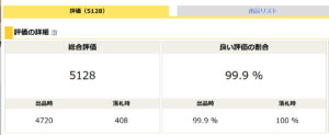 良い出品者の場合は良い評価がこのように限りなく100%に近い評価を受けています。