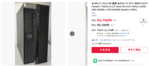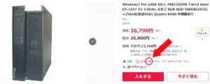 検索窓に「dell precision T5820」等目当ての機種名を入力して商品のページが開いたら