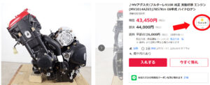 これは今欲しいオートバイのエンジンですが新品では90万円します。走行8,000km弱で程度良好の個体が5万円以下、となると上記の手法で調達を試みますw